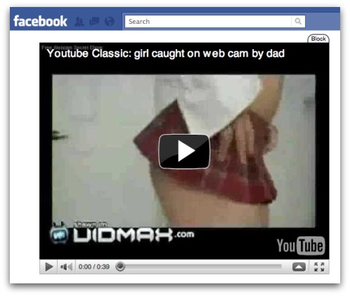 Earlier this month I wrote about a scam spreading virally on Facebook that posed as a video of a father catching his daughter on a webcam.