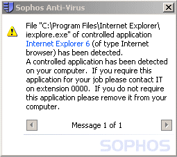 So, if your company wants to block Internet Explorer and force the use of Firefox, they can if they want with help from Sophos. You may be upset that we’ve given your system administrator this ability to set a policy, but ultimately it’s your company which set the policy, not us. We’re just enforcing your company’s policy.